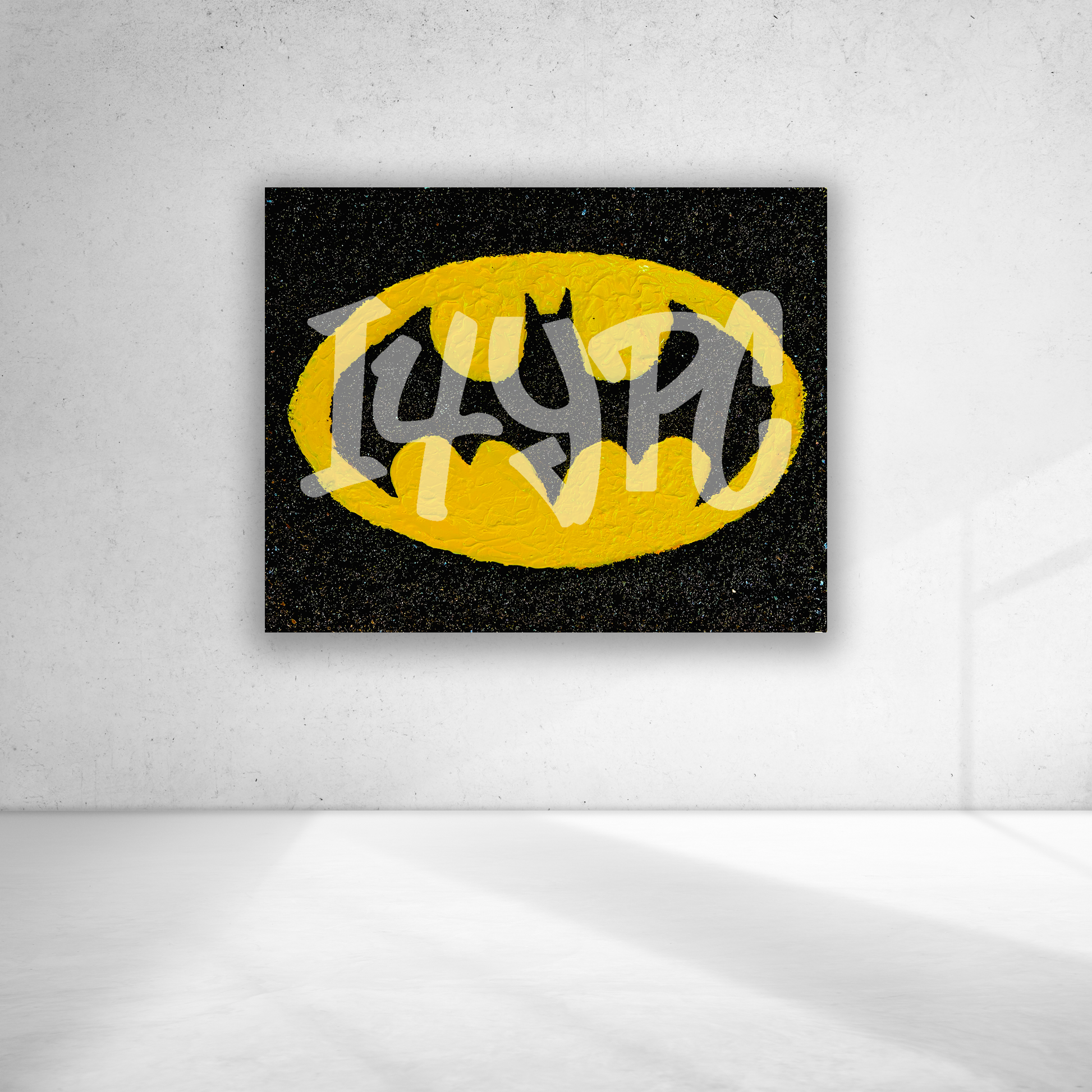 Experience the iconic symbol of justice and strength with our Batman Canvas. This original art on canvas showcases the infamous batman symbol in all its glory. Add a touch of superhero power to your room or office with this unique piece.